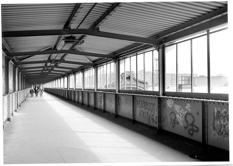 Viel länger war die Fußgängerbrücke, und nicht so lang ist's her. Die Geschichte beginnt 1877: Südlich des heute wieder abseits liegenden S-Bahnhofes entstand am gerade vollendeten Ring der große Central Vieh- und Schlachthof als Stadt vor der Stadt. Angesichts des Elends in überfüllten Gründerzeitquartieren hatte der Arzt und Politiker Rudolf Virchow diese Maßnahme schon Jahre zuvor im Rahmen wachsender kommunaler Aufgaben angeregt, um die unhygienische Metzelei in den Hinterhöfen zu beenden.
