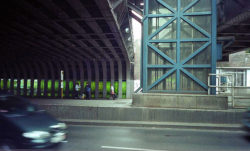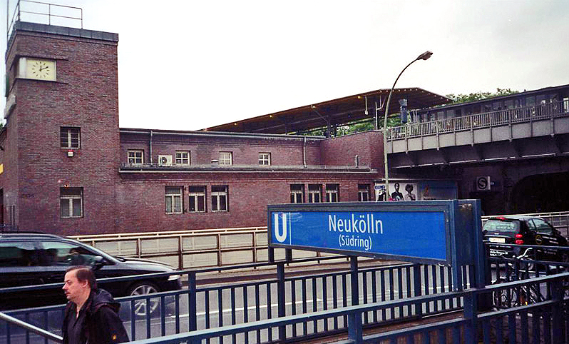 Der imponierende, denkmalgeschützte Bahnhofsbau aus rotem Backstein liegt direkt an der Karl-Marx-Straße, die vor Fußgängern, Autos, Bussen und Straßenbahnen nur so brummt. Leute steigen um, gehen gleich nebenan in die nicht mehr ganz taufrischen Filialen großer Ketten oder verbringen ihren Tag an den Straßenecken, ein bisschen verdächtig wirkend, aber doch zugänglich. Der Tunnel unter den S-Bahn-Gleisen ist in seinem futuristischen Stahl-Design von überraschender Eleganz. Das gilt auch für die 1927 gebaute S-Bahnbrücke, die vom Senat jüngst eine Licht- und Kunstinstallation spendiert bekam, um die hohe Kriminalität an diesem Ort zu senken und das Image des Viertels aufzuwerten.