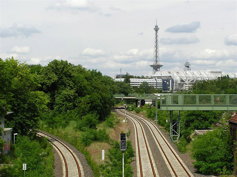 Die Ring- trifft hier auf die Stadtbahn, die als bedeutende Ost-West-Verbindung Ende des 19. Jahrhunderts auf einem charakteristischen Backsteinviadukt durch Berlin und seine Vorstädte geführt wurde. Auf ihren vier Gleisen verkehren bis heute sowohl Fernzüge als auch mehrere S-Bahnlinien entlang der wichtigsten Bahnhöfe Berlins; außerhalb des Rings gelangt man vom Westkreuz zum Olympiastadion und weiter nach Spandau oder zur Sommerfrische an den Wannsee und von dort bis nach Potsdam; kurzum: nach „Jott-wee-dee“ („janz weit draußen“).