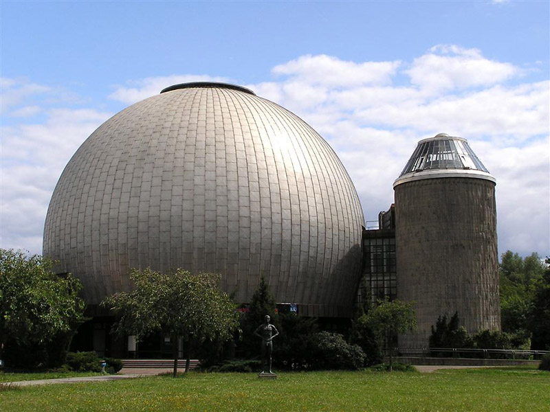 Das Empfangsgebäude der Ringbahn lag bis 1984 im Schatten zweier mächtiger Gasometer, die unter Anwohnerprotesten für den Neubau des Ernst-Thälmann-Parks gesprengt wurden. An ihrer Stelle glänzt seitdem die Aluminiumkugel des Zeiss-Großplanetariums. Im Innern zaubert der „Cosmorama"-Projektor gut 10.000 Sterne als Himmelsschmuck auf die im Dunkeln liegende Betonwand. Das größte Planetarium Deutschlands war zu DDR-Zeiten ein Sternenpalast der Republik. Hier herrschte reger Publikumsandrang, lockte doch die uneingeschränkte Reisefreiheit durch die Weiten des Weltraums. Der Stolz auf den Prestigebau ist der Belegschaft noch heute anzumerken. Großer Beliebtheit erfreut sich seit einigen Jahren das „Hörspielkino unterm Sternenhimmel". Bei Douglas Adams „Per Anhalter durchs die Galaxis" hing das Publikum stoned in den Sesseln oder räkelte sich auf dem Fußboden. Das Haus unterließ es, weitere Folgen des Mehrteilers vorzuführen.