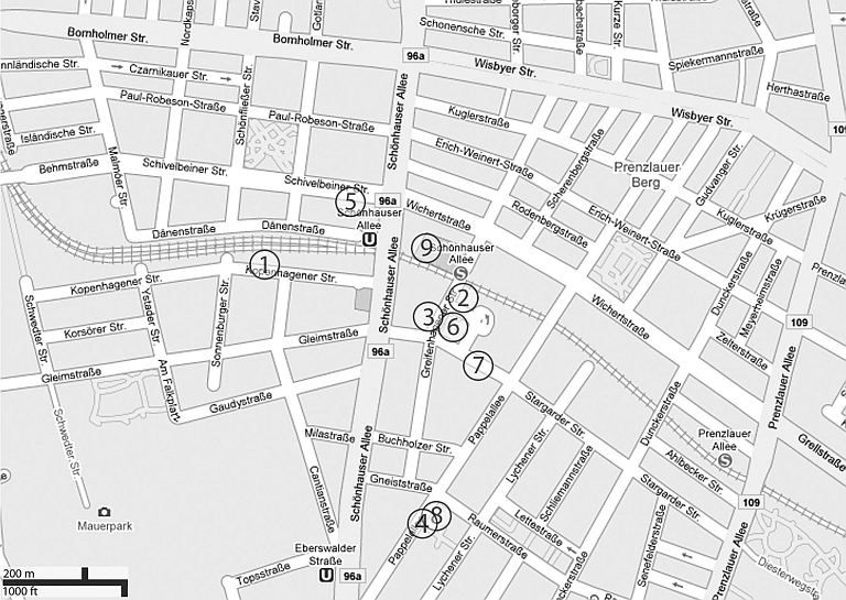 7. Stargarder Straße | Mit seinen vielen Cafes, Läden, und Restaurants ist Straße das heimliche Herz des Helmholtz-Kiezs neben der Ringbahn. Das Straßenbild vor den Eisdielen, Antiquitäten- und Feinkostläden wird geprägt durch viele Kinder, ältere Lebenskünstler und die obligatorischen Hunde | Stargarder Straße, zwischen Schönhauser Allee und Dunckerstraße