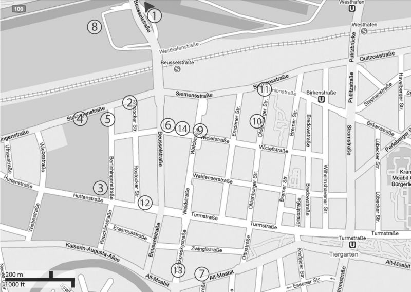 4. Gewerbehof Tiergarten | Der Ausgangspunkt der blutigen "Moabiter Unruhen". 1910 streikten hier die Arbeiter der "Kohlenhandlung Kupfer & Co" für eine Lohnerhöhung. Die Polizei griff brutal ein, Massenkrawalle waren die Folge | Sickingenstraße 20-23